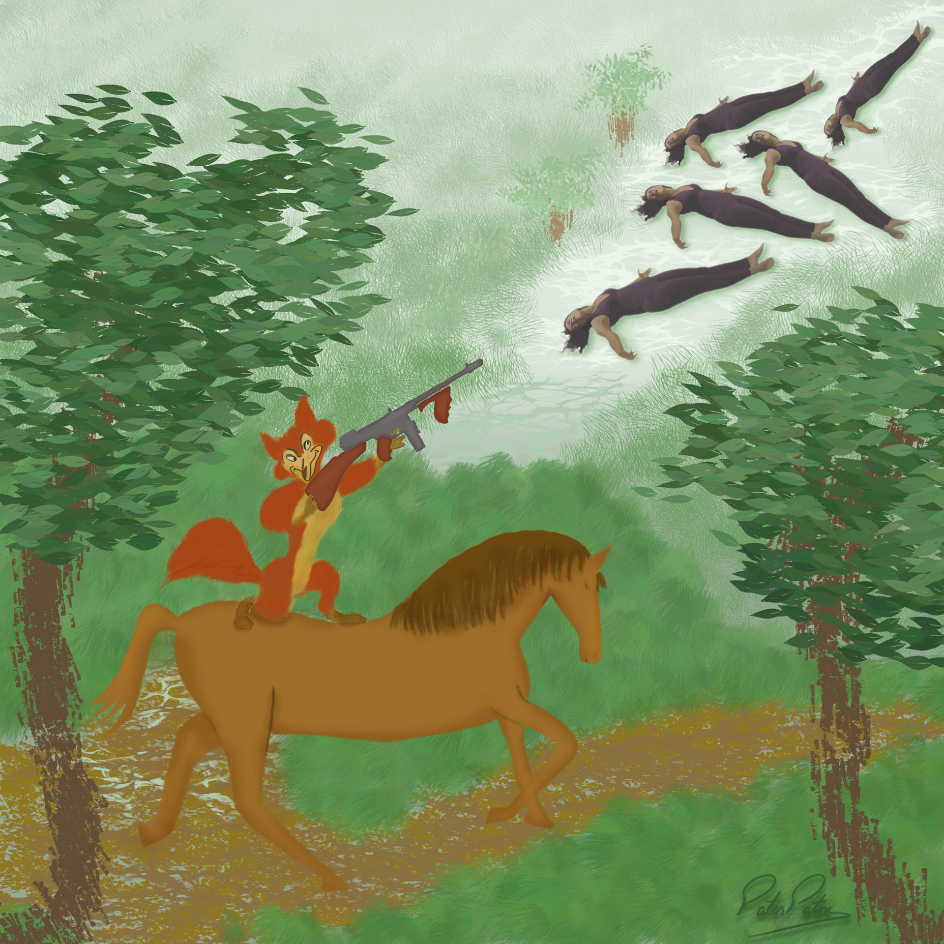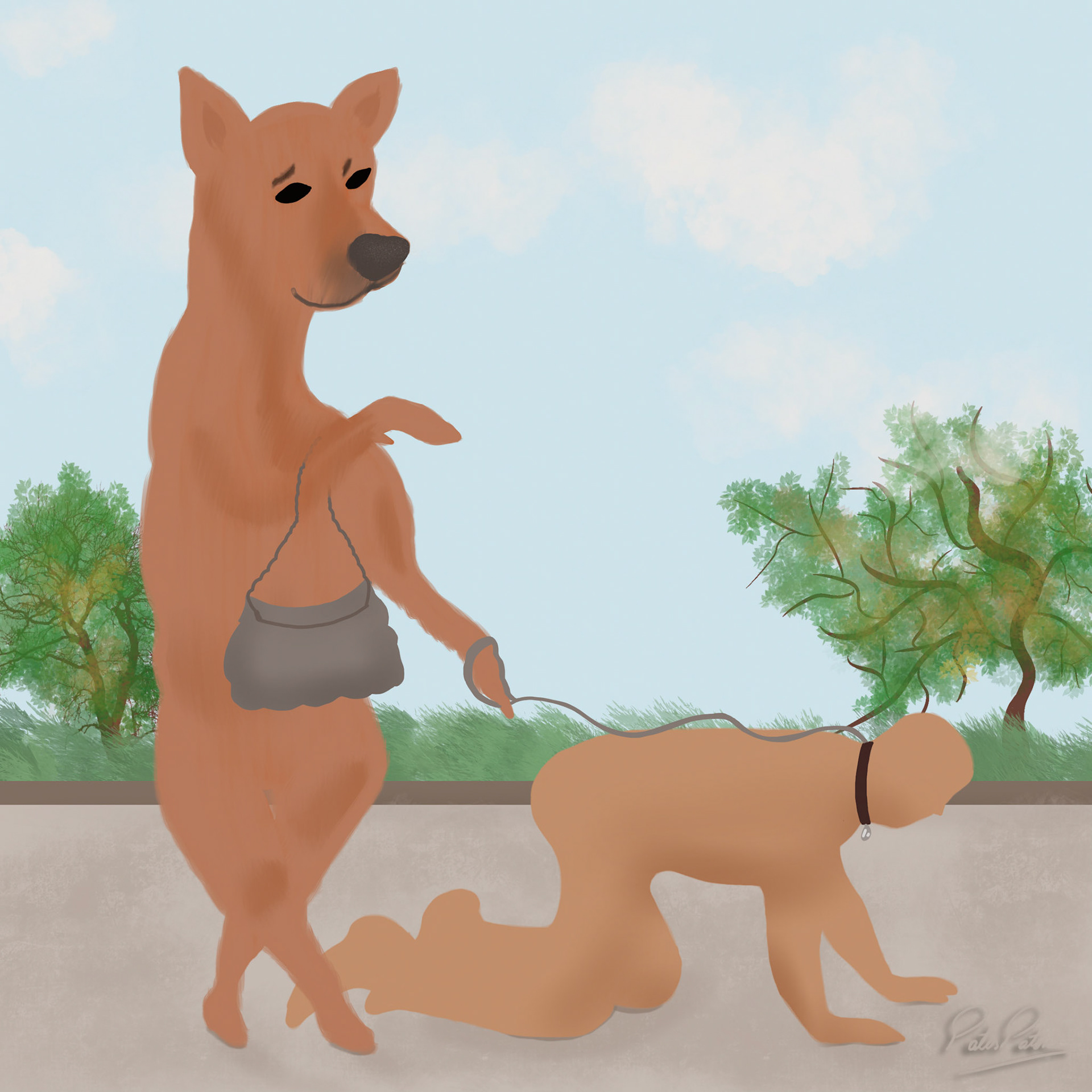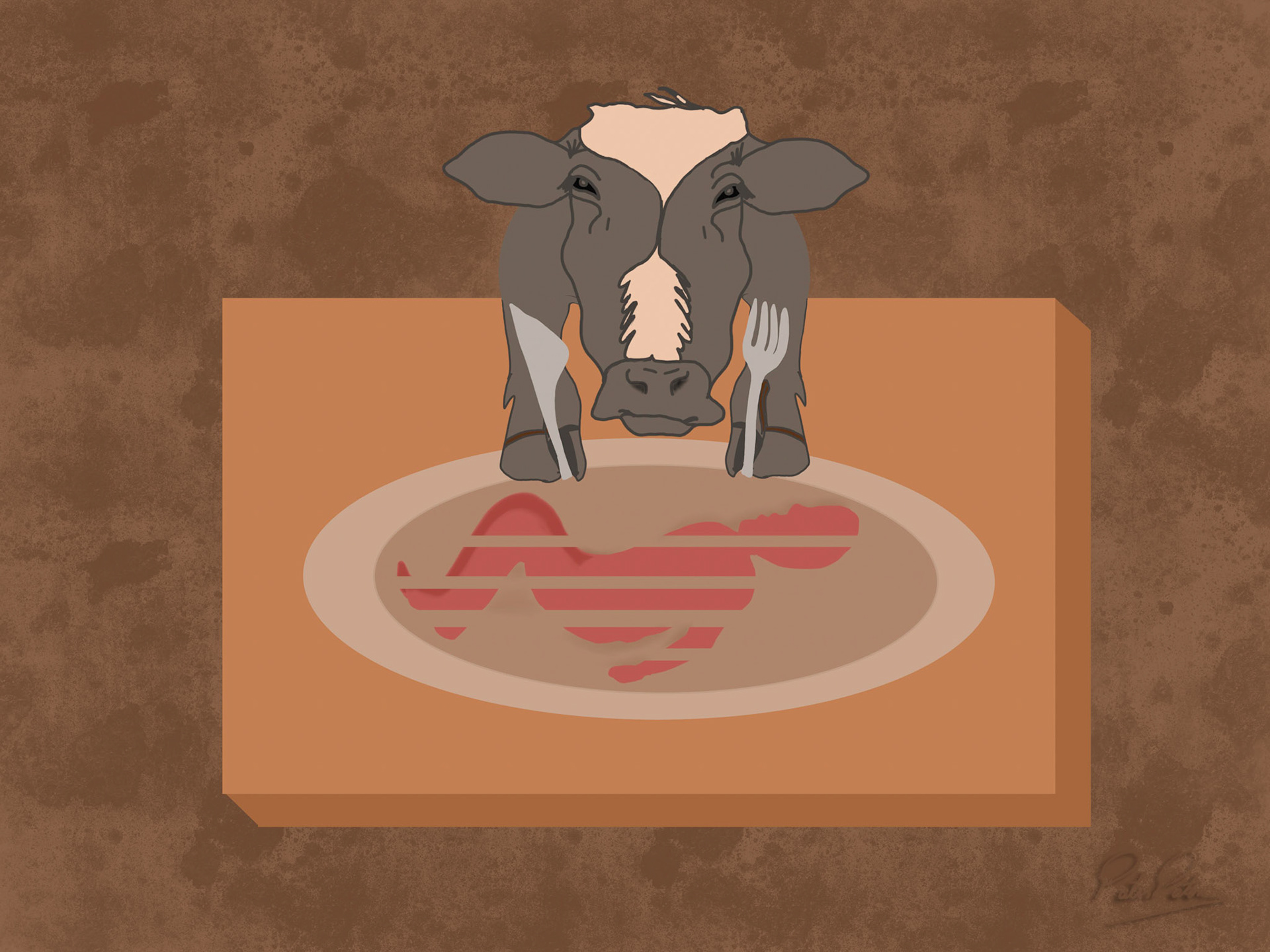 In this illustration series my main focus is to playfully stress how human beings interfere with normal nature by reversing the roles where animals take the position of the human beings with the exception of the last one where human beings want revenge. The series started with the idea of reversal roles with the intent of revenge. The illustrations stress the impact of humans' habits upon climate and animal welfare. The series closes with an illustration that focus on the pivotal role that humans have upon treatment of diseases, though they are the ones causing imbalance first.