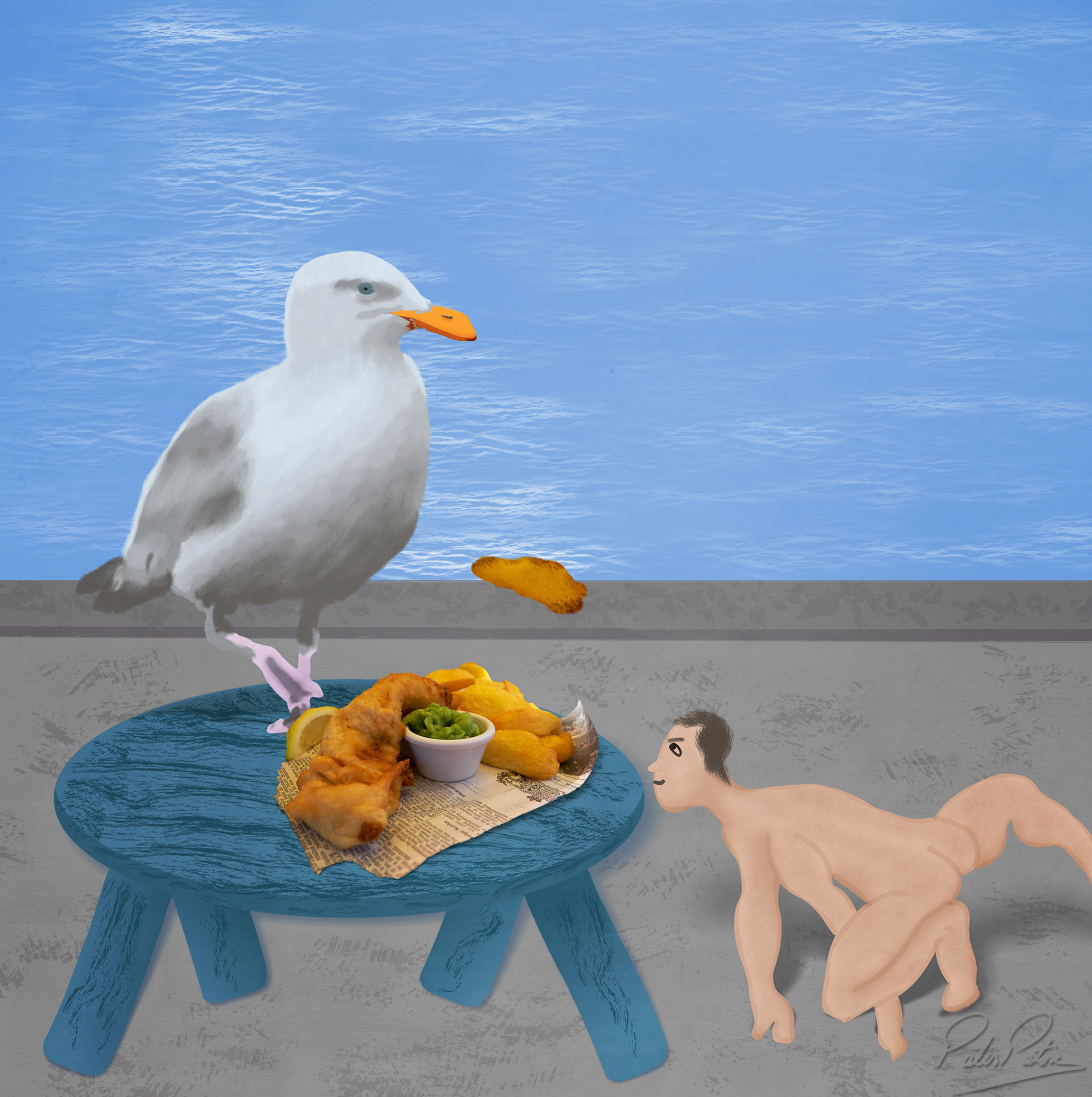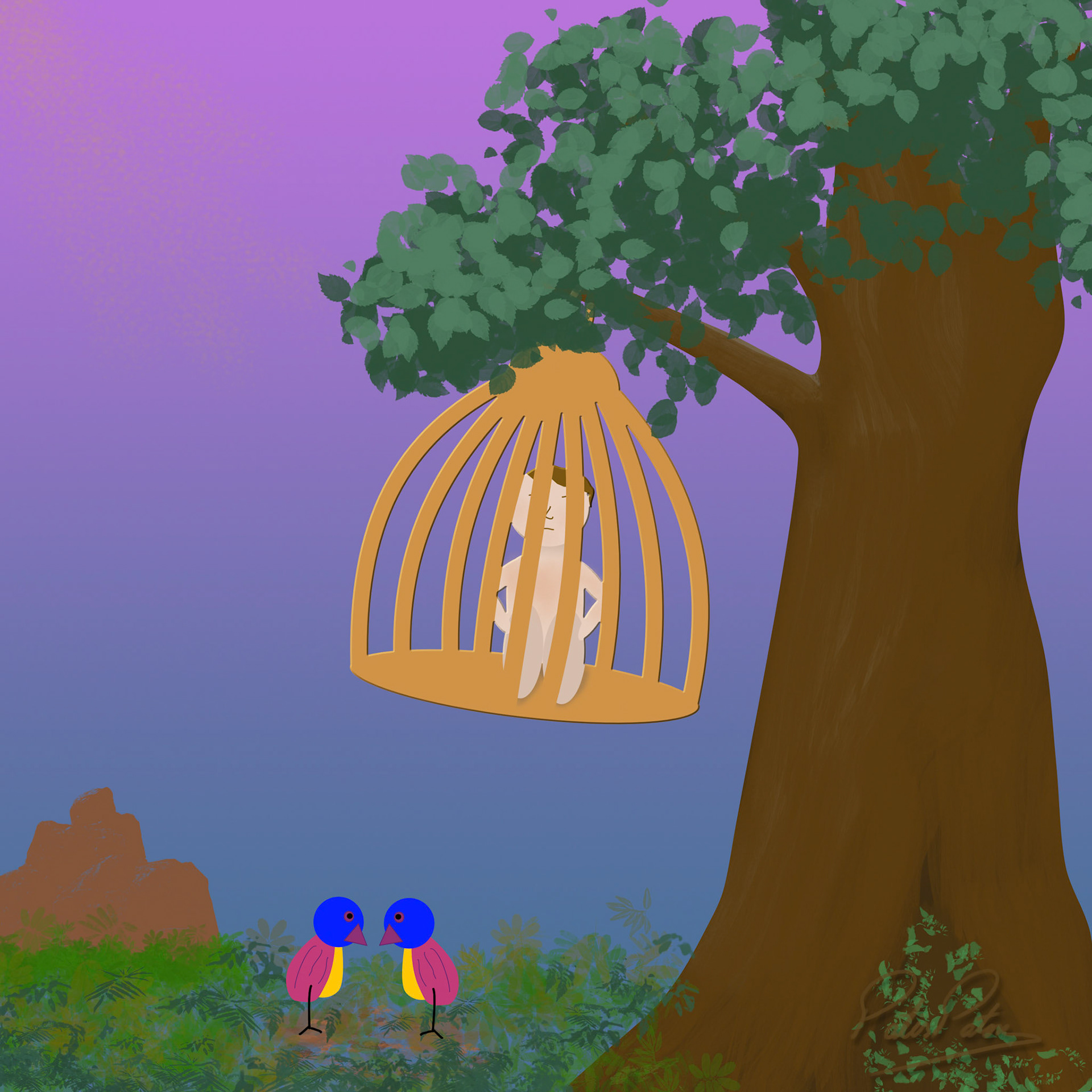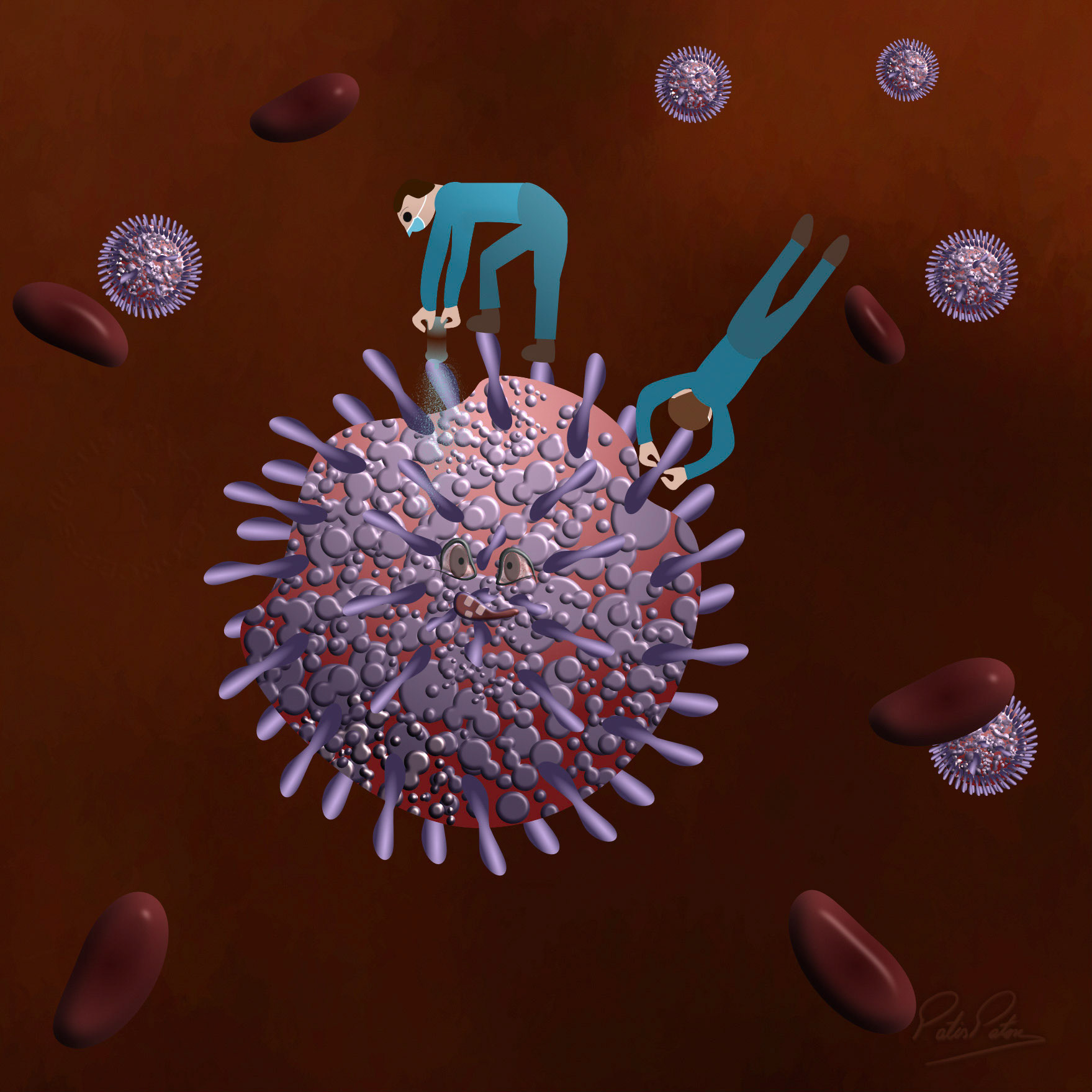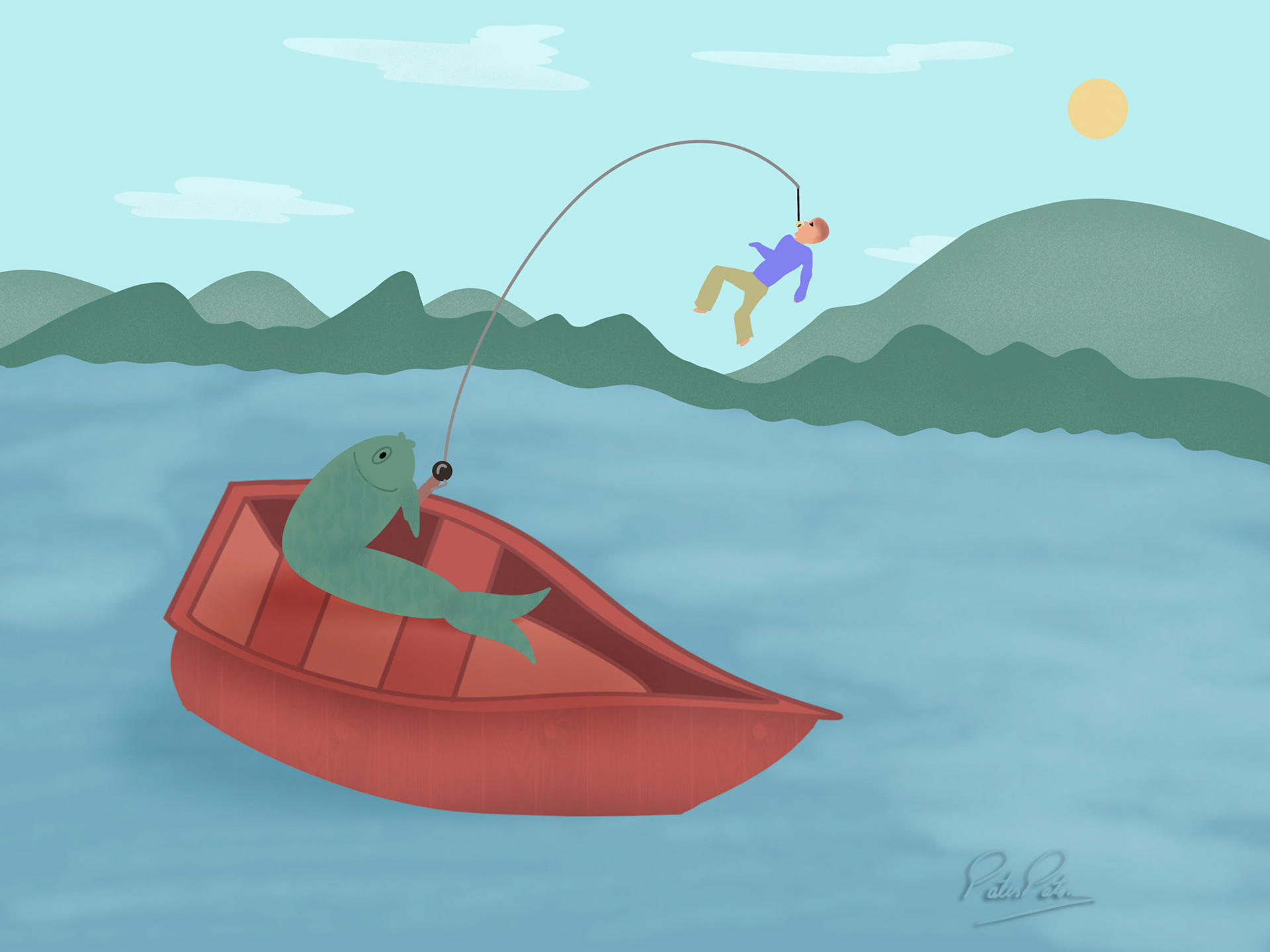 In this illustration series my main focus is to playfully stress how human beings interfere with normal nature by reversing the roles where animals take the position of the human beings with the exception of the last one where human beings want revenge. The series started with the idea of reversal roles with the intent of revenge. The illustrations stress the impact of humans' habits upon climate and animal welfare. The series closes with an illustration that focus on the pivotal role that humans have upon treatment of diseases, though they are the ones causing imbalance first.