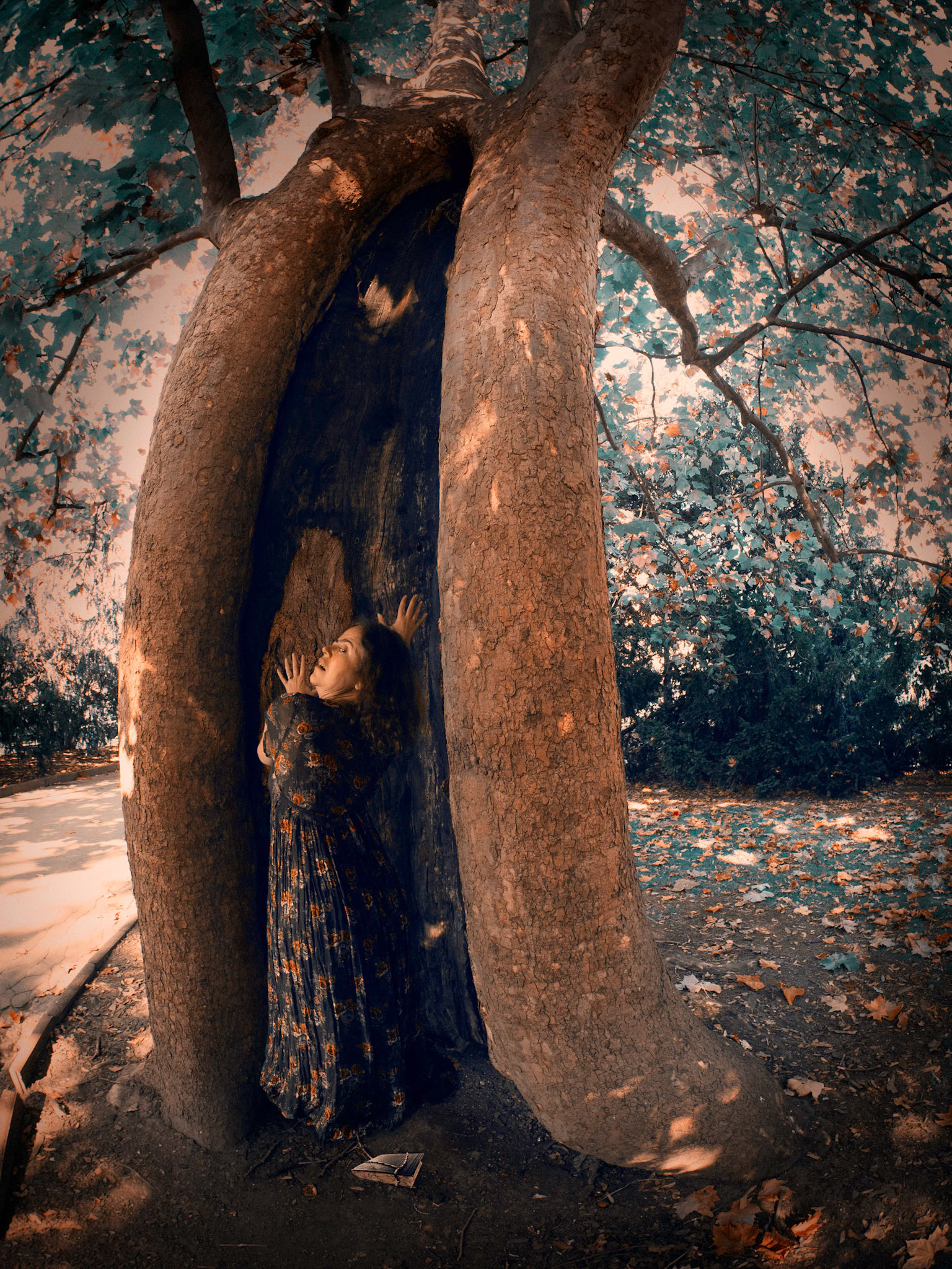 Woods, forests and paths surrounded by trees are more than enough to make my imagination overflows. All of them have its own mystery mood, which is enough to trigger emotions, ideas and stories. Do I need much more than that for my creativity? What about you? Do you feel that your mind is carried away with thoughts when you get into that vast darkness of the woods and consequently you insert yourself into a dramatic imaginative world? They say Scotland has too much rain, however there is a positive side for it. It provides me with a vast green area for me to work where trees can lie wildly. It is within the forests that I feel closer to nature and this brings calmness, which consequently allows my muse to settle down. In this series I have subjects with different feelings such as apprehension, longing, curiosity and despair. They all stress the role that nature plays with my own feelings.
